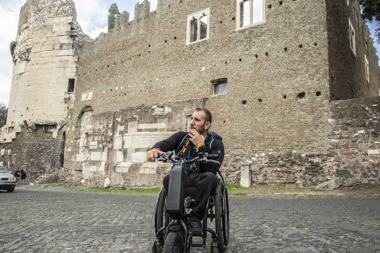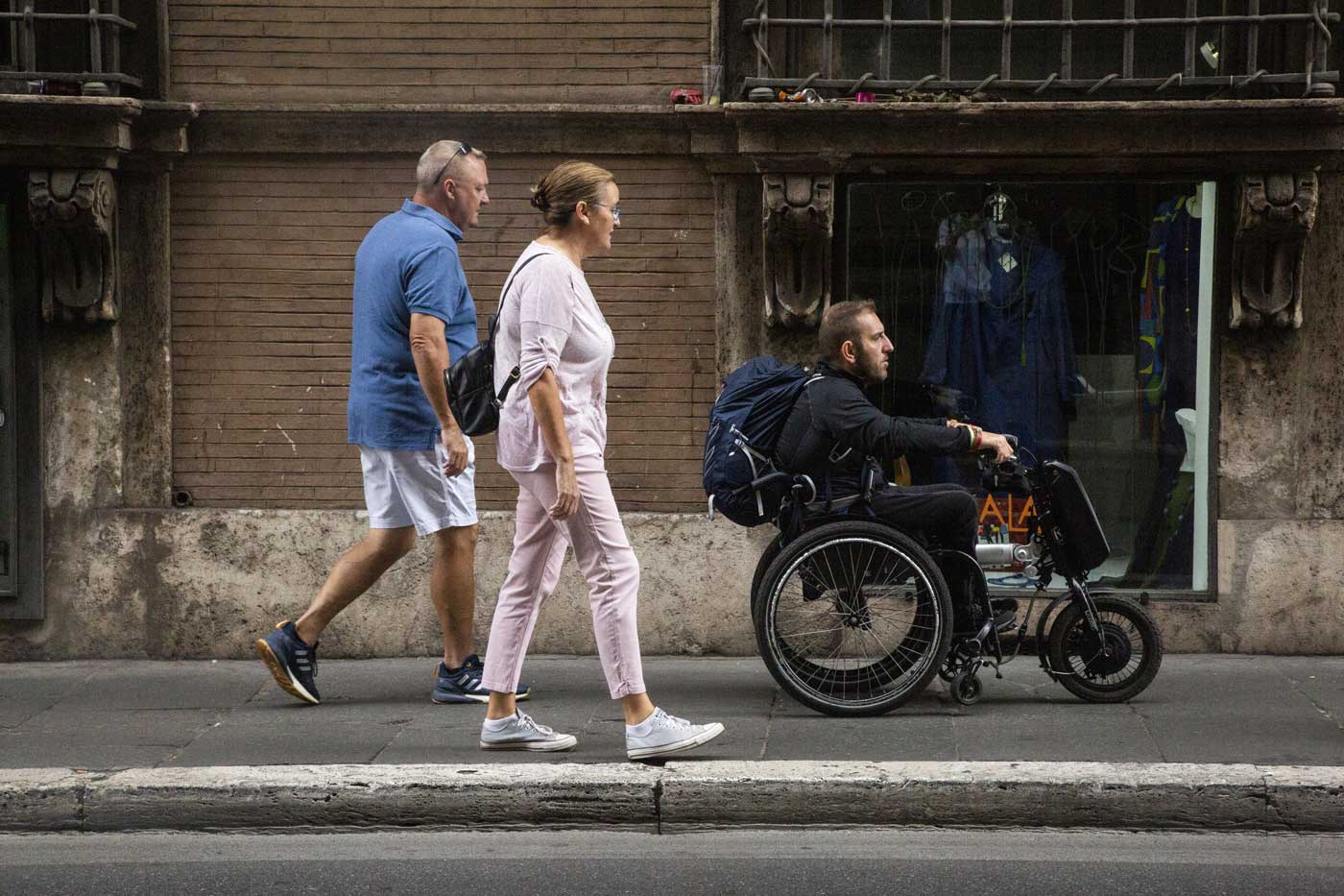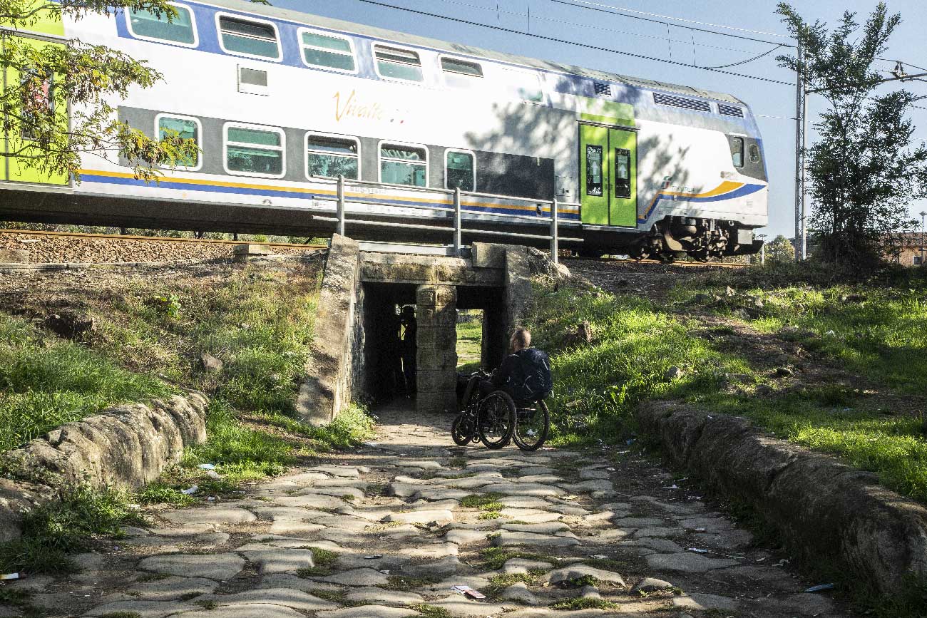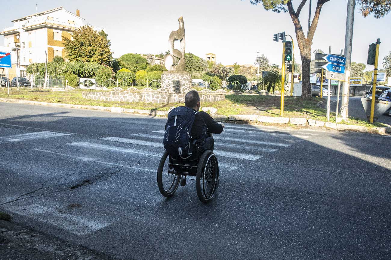 Attraversamento di Roma non sempre dotato di marciapiedi e quando ci sono non tutti hanno il raccordo con la sede stradale