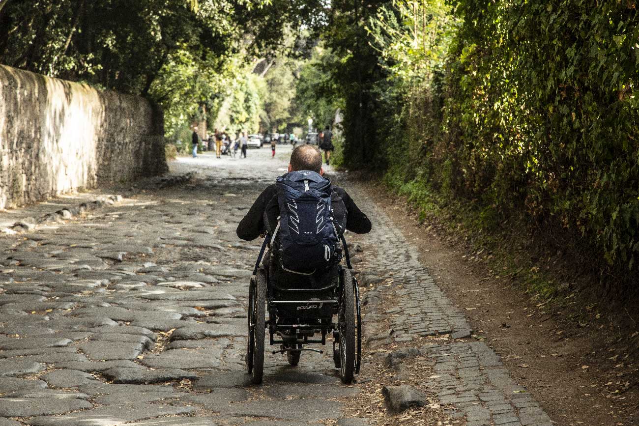 Usciti da Roma, percorsa parte di questa antica via di peregrinazione, subito dopo aver superato l’incrocio con via di Fioranello, il percorso inizierà con una strada bianca che in breve diventa basolato con tratti di bypass laterali un po’ sconnessi. A distanza di circa 700 m dall’incrocio troverete uno sbarramento con pietre grosse con un piccolo varco di circa 70 cm. Consigliamo di affrontare l’intero tratto fino a via Capanne di Marino con assistenza.